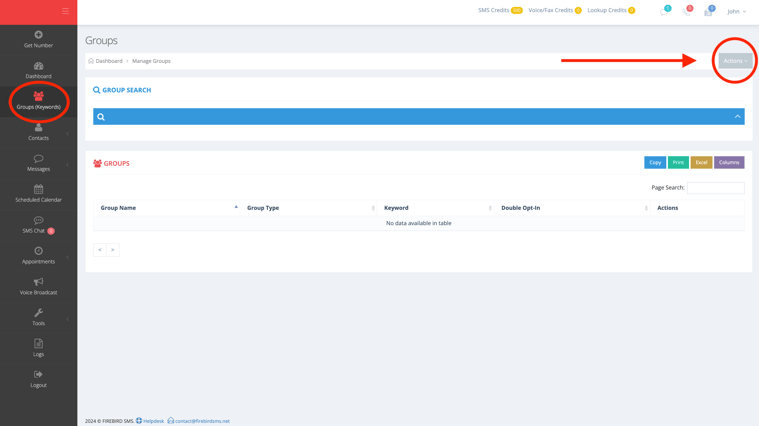 1. Click on the "Groups (Keywords)" sections from the menu on the left side.