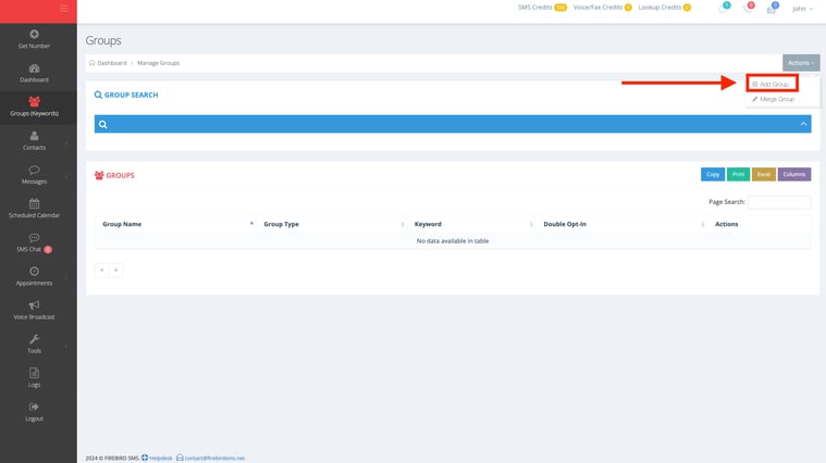 3. Click on "Add Group" .